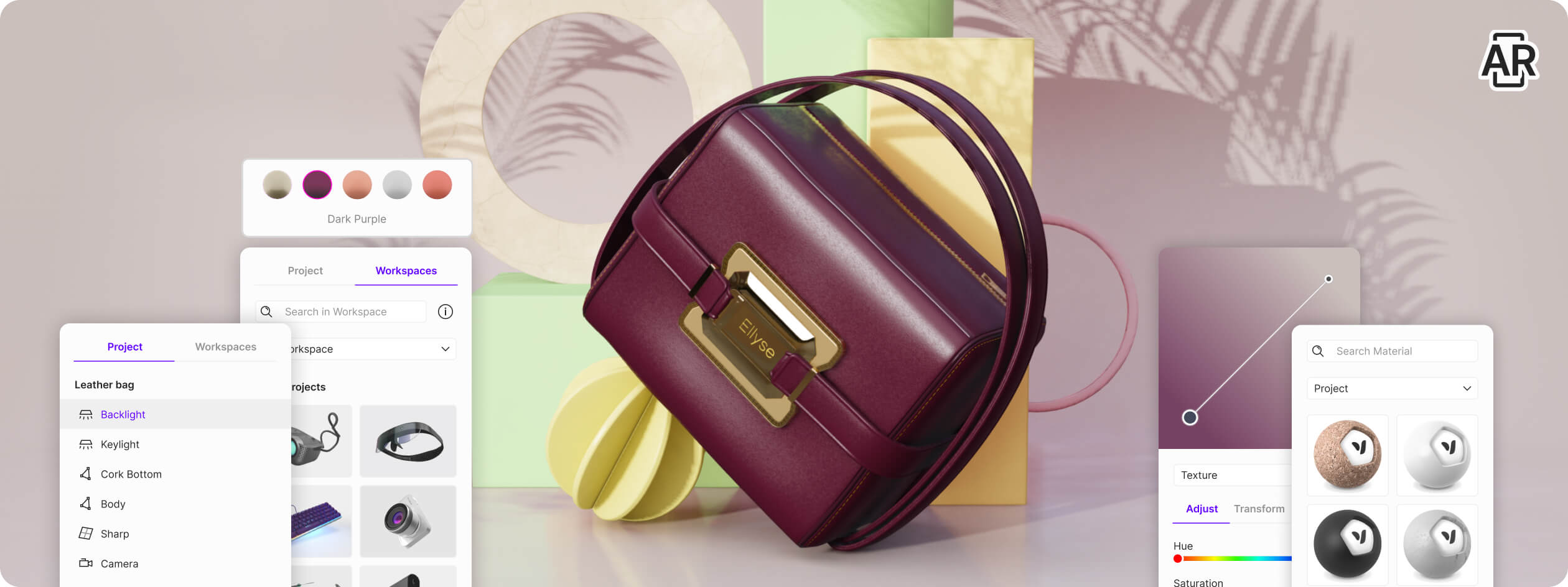 Combine multiple designs into one 3D presentation for comparison and detailed analysis. Share material options with your team to get feedback or input. Use AR to instantly test in your environment without using physical samples.